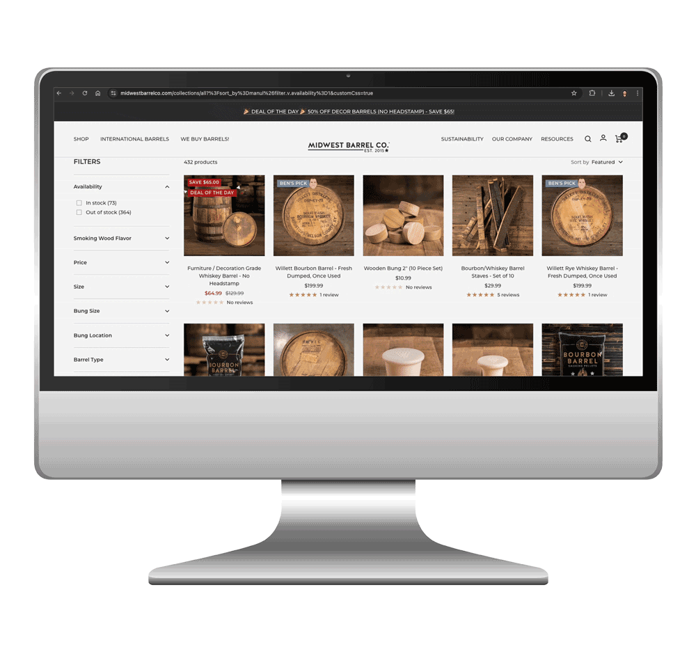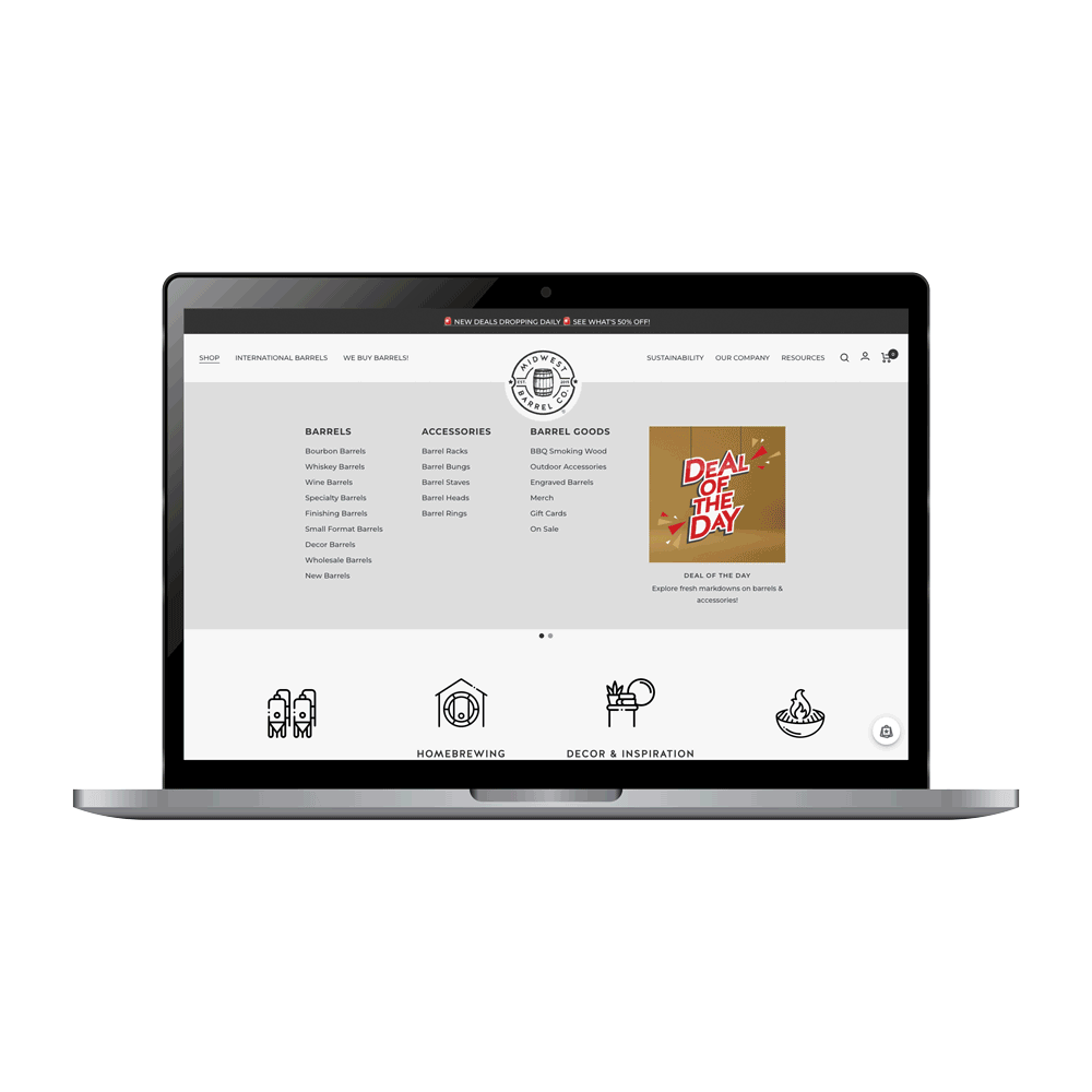 For Midwest Barrel Co., a leading distributor of new and repurposed barrels, I led and executed design solutions that strengthened the brand across every customer touchpoint including digital, physical, and experiential.